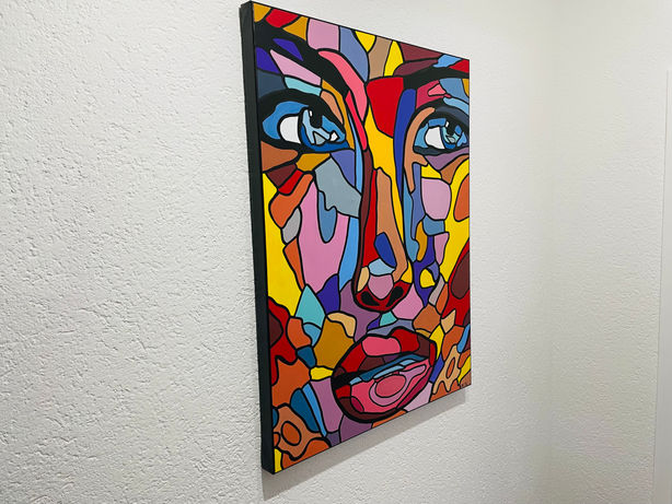 In Colorful Emotions präsentiert Uli Fischer ein Porträt, das weniger von Kontur als vielmehr von Gefühl geformt ist. Das Gesicht setzt sich aus einem Mosaik aus organisch ineinandergreifenden Farbflächen zusammen, deren Grenzen durch schwarze Linien definiert werden.